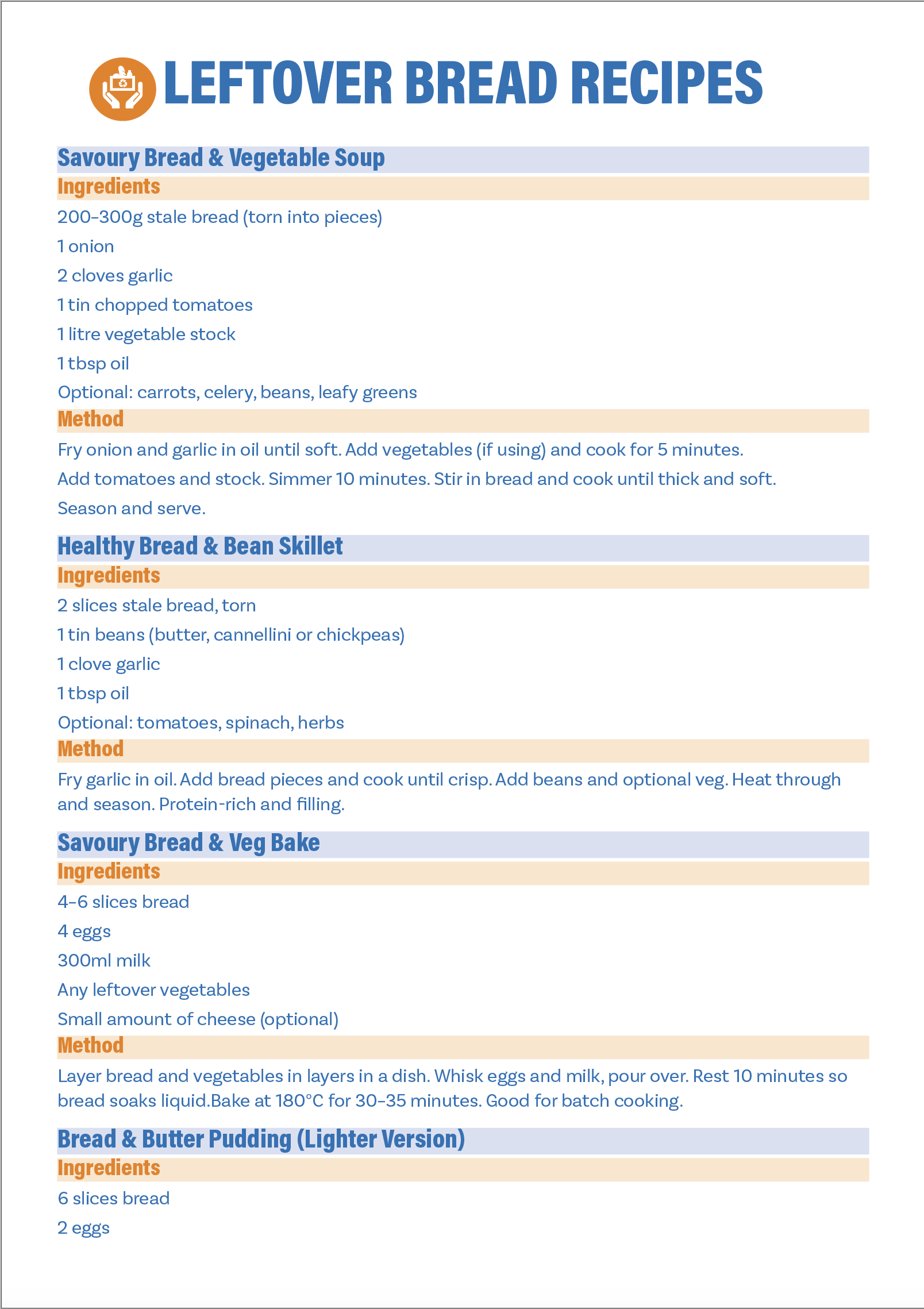 Cook and eat appropriate portion sizes — leftover portions can be frozen for lunches or dinners. (Portion control to reduce waste)